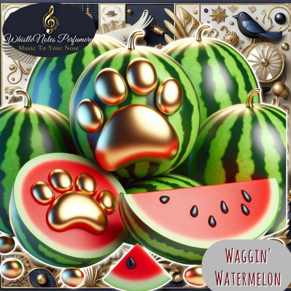 Waggin' Watermelon: A juicy and playful fragrance that captures the essence of a summer picnic. This scent combines the sweet and refreshing notes of ripe watermelon with a hint of a cool breeze.