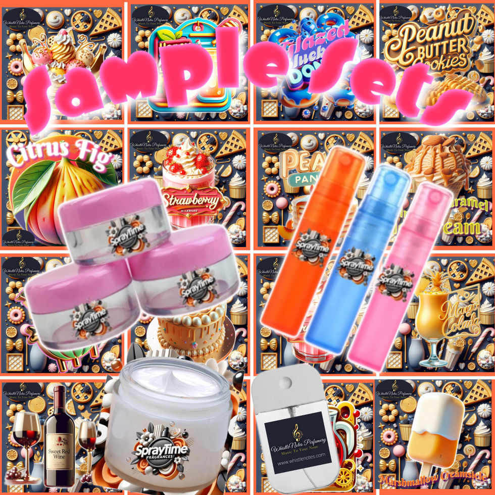 Each sample set includes 3 sprays AND 3 body creams, so you can play with scent layering and smell YUMMY in the process!